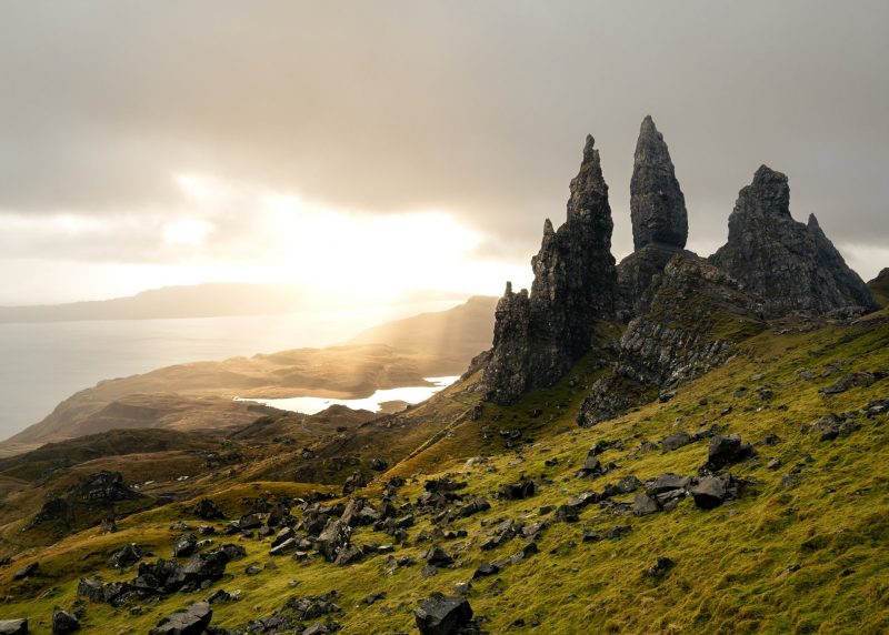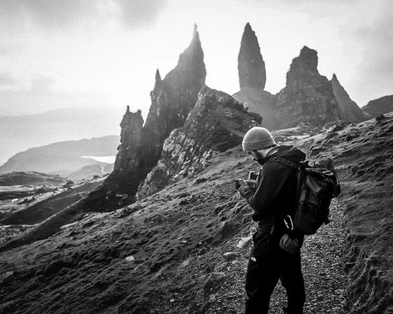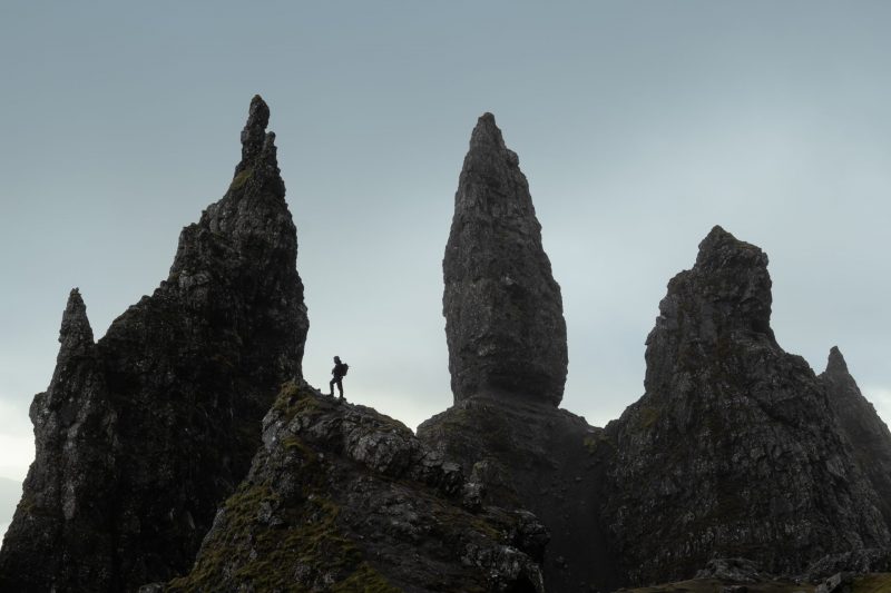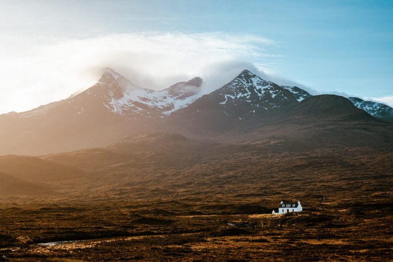 Sur l’île de Skye, c’est la chaîne des Cuillin qui m’attire tout particulièrement. Ces montagnes abruptes, souvent enveloppées par la brume – ce que les Écossais appellent la « Scotch mist » – créent une atmosphère presque surnaturelle. J’ai vu ces sommets se couvrir de neige en quelques heures seulement, et la lumière changer au fil de la journée, passant d’un gris doux à des éclats dorés inattendus. Chaque moment ici est un tableau, une invitation à capturer l’éphémère.