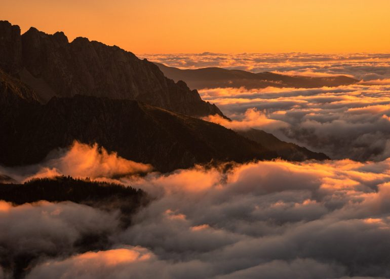 À mesure que le soleil s’élève, la mer de nuages se dissipe lentement, dévoilant les vallées en contrebas. Les montagnes se révèlent sous une lumière dorée, transformant le paysage et offrant un spectacle inoubliable. Ce moment, où le jour se lève au-dessus des nuages, incarne toute la beauté et la sérénité des Pyrénées, un souvenir gravé à jamais dans ma mémoire.